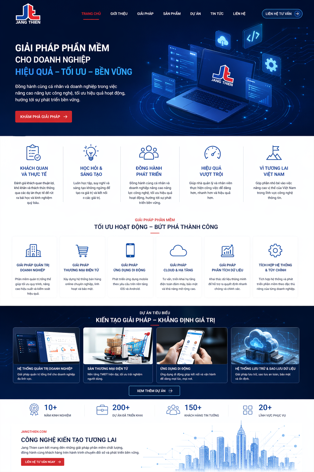 Không ngừng nỗ lực và sáng tạo, chúng tôi tạo ra các ứng dụng được cập nhật về công nghệ, quy trình xử lý thông minh, giao diện đẹp. Am hiểu sâu sắc về nhiều lĩnh vực kinh doanh, JangThien đã và đang cung cấp các giải pháp tổng thể chuyên dụng giúp kết nối các hoạt động và đem lại hiệu quả hơn bao giờ hết..